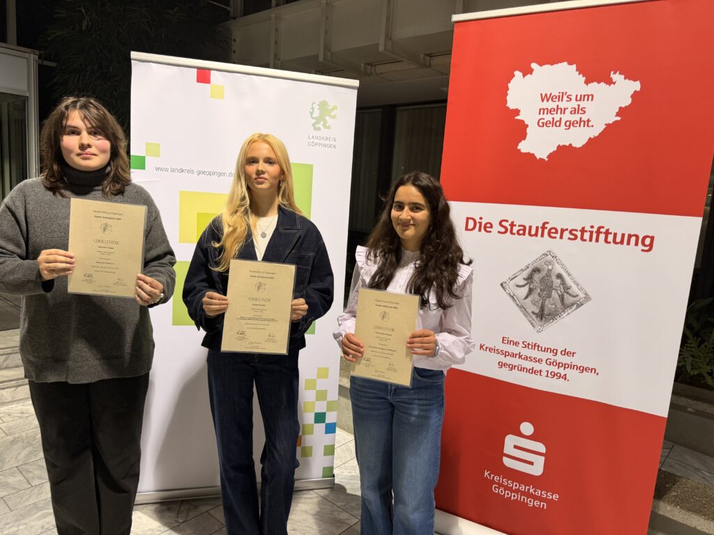 Bei der feierlichen Preisverleihung des Staufer-Schülerpreises am Samstag, den 8. November 2025, im Landratsamt Göppingen konnten gleich drei Schülerinnen des Hohenstaufen-Gymnasiums beeindruckende Erfolge erzielen: Zwei erste Plätze und ein dritter Platz gingen an das HoGy – ein herausragendes Ergebnis, das den kreativen und engagierten Beitrag unserer Schülerinnen würdigt. Der Staufer-Schülerpreis wird seit vielen Jahren vom […]