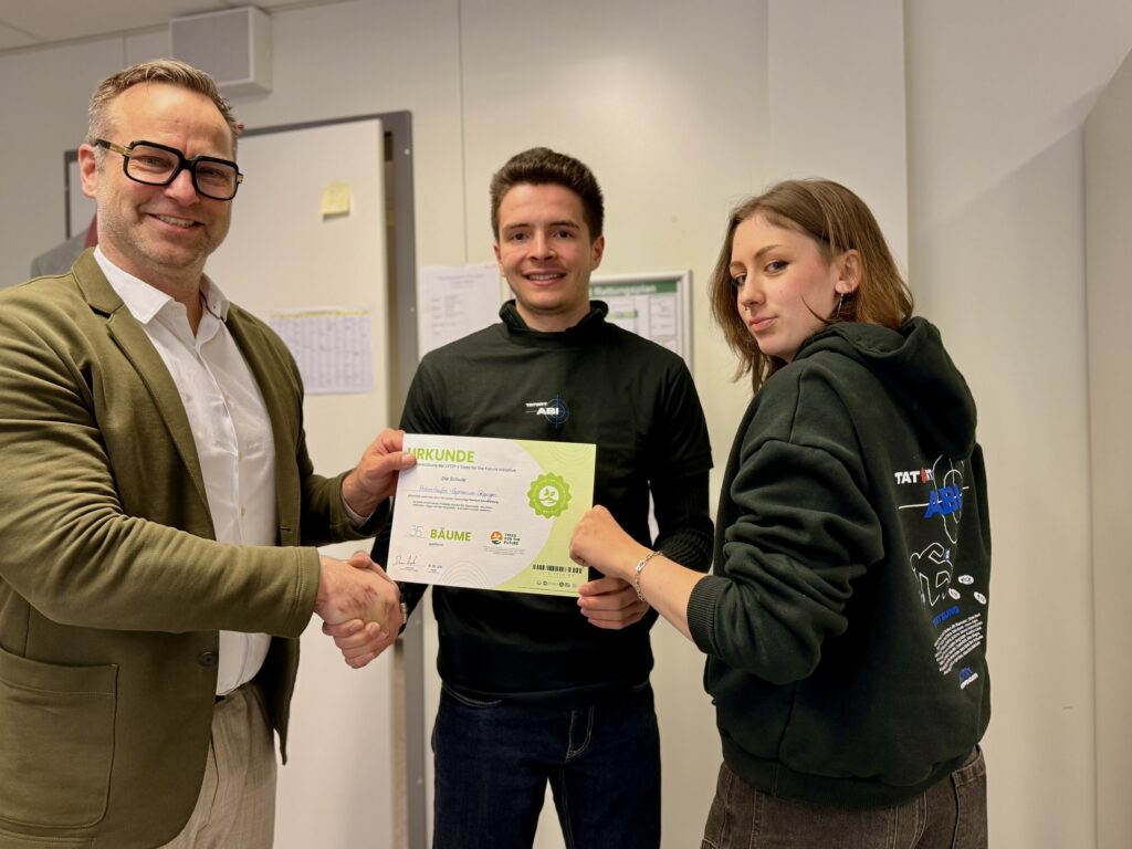 Mit besonderem Stolz blickt unsere Schule auf das Engagement der diesjährigen Abiturientinnen und Abiturienten bei der Gestaltung ihrer Abi-Shirts. Bei der Produktion wurde bewusst auf Nachhaltigkeit geachtet – ein Anliegen, das hervorragend zu unserem schulischen Leitbild passt. Emanuel und Alissa stellten die Shirts kürzlich der Schulleitung vor und überreichten Schulleiter John Ahlskog eine Urkunde, welche […]