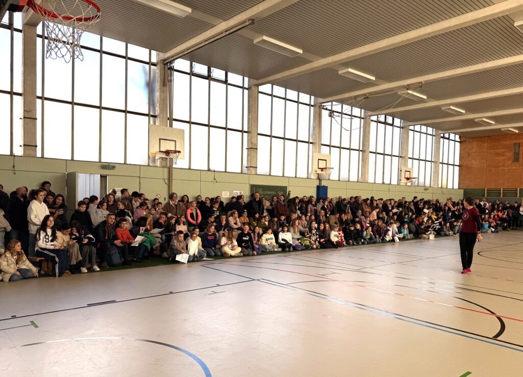 Für die Kinder gab es einen eigenen Entdeckerplan, mit dem sie verschiedene Stationen besuchen konnten – am Ende wartete als kleine Belohnung ein Geschenk. Ein besonderes Highlight war der spektakuläre Auftritt der Sportakrobatinnen in der Sporthalle, der viele begeisterte Blicke auf sich zog. In der Mensa sorgten Kaffee und Kuchen für eine gemütliche Atmosphäre, während die Theater-AG mehrfach ein kurzweiliges und sehr gelungenes Theaterstück präsentierte. Zudem informierten die unterschiedlichen Fachschaften anschaulich über das breite schulische Angebot des HoGy.