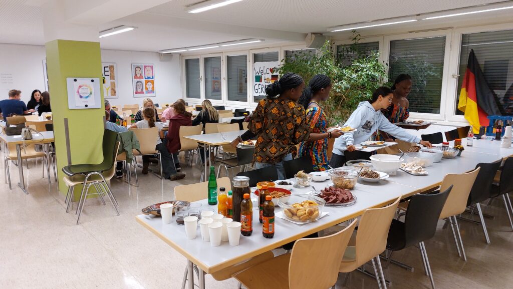 Die neue HoGy-Schulpartnerschaft mit der Kabulonga Girls Secondary School in Lusaka, Sambia wurde mit einem kulinarischen Fest in unserer Mensa gefeiert. Knapp zwei Wochen bereicherten Lushomo, Surayaa und Tiyeshye mit ihrer Lehrerin Frau Kamwengo-Mkangaza und Schulleiterin Frau Kapula unsere Schulgemeinschaft. Sie unterhielten sich interessiert mit unseren Schülerinnen und Schülern und lernten neben Göppingen und dem Hohenstaufen auch Esslingen, Stuttgart und das Biosphärengebiet Schwäbische Alb kennen.