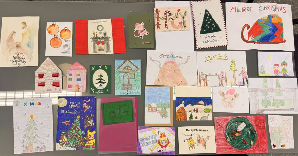 Ein großes Dankeschön geht an alle, die mitgemacht haben. Jede Einsendung war etwas Besonderes. Alle Teilnehmenden erhalten ihre Kartenentwürfe selbstverständlich zurück – hoffentlich rechtzeitig, damit sie noch in der Weihnachtszeit zum Einsatz kommen können.
